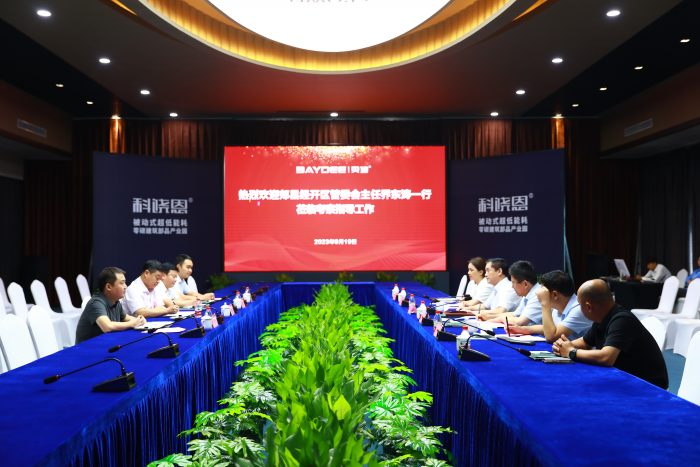 王總首先對喬東濤主任一行的到來表示熱烈的歡迎,他說,貝迪集團(tuán)十余年來始終堅(jiān)持綠色低碳可持續(xù)的發(fā)展理念,在綠色型材、超低能耗系統(tǒng)門窗、生物基可降解材料等領(lǐng)域持續(xù)深耕,已經(jīng)成為行業(yè)知名品牌。目前貝迪集團(tuán)正在推進(jìn)新園區(qū)高質(zhì)量建設(shè),加快推進(jìn)產(chǎn)業(yè)研發(fā)升級,提升核心競爭力,希望有機(jī)會能同郟縣經(jīng)開區(qū)攜手合作、共贏未來。