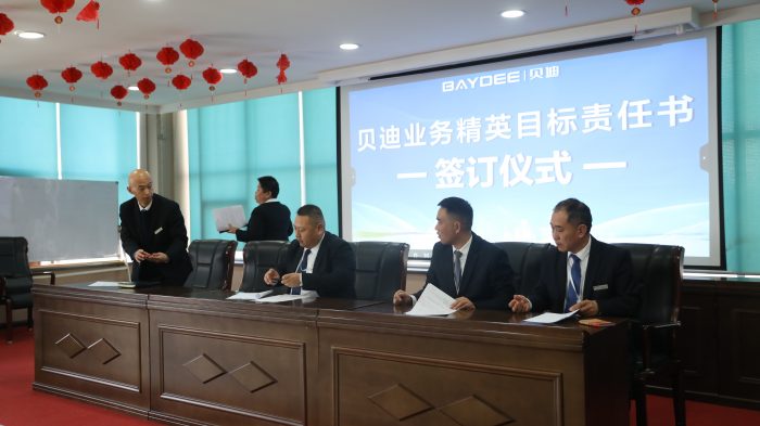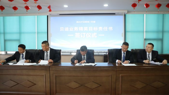 隨后,各位業(yè)務(wù)精英在2025年目標(biāo)責(zé)任書上簽下了自己的名字。簽署一份目標(biāo)責(zé)任書,便是扛下了一份沉甸甸的責(zé)任。立足2024年,貝迪人志存高遠(yuǎn),不畏艱辛,有信心扛下這份光榮的使命。