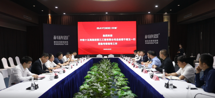4月25日,中鐵十五局集團第三工程有限公司總經(jīng)理千紹玉一行蒞臨河南貝迪,圍繞綠色建筑新材料、超低能耗門窗技術(shù)及產(chǎn)業(yè)鏈合作進行考察,貝迪集團董事長王新民等集團領(lǐng)導(dǎo)陪同考察。