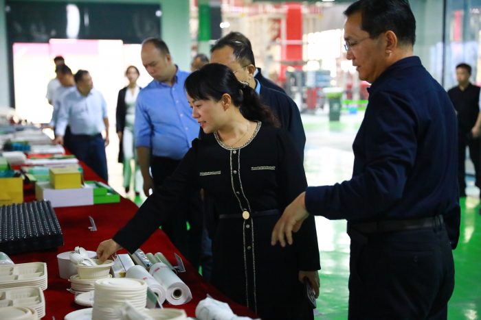 在靳總等領(lǐng)導(dǎo)的陪同下,郭秋香副書記一行參觀了貝迪旗下科饒恩系統(tǒng)門窗展廳、貝迪全屋凈裝展廳、科饒恩品牌運(yùn)營中心、特創(chuàng)生物可降解材料產(chǎn)業(yè)園等,認(rèn)真聽取了公司領(lǐng)導(dǎo)對于超低能耗系統(tǒng)門窗產(chǎn)品、全屋凈裝產(chǎn)品以及全生物降解塑料制品的介紹,并深入到超低能耗系統(tǒng)門窗生產(chǎn)車間、生物可降解塑料生產(chǎn)車間近距離觀摩了各種產(chǎn)品工藝技術(shù)。郭秋香副書記詳細(xì)詢問了企業(yè)的研發(fā)人員結(jié)構(gòu)、科技創(chuàng)新成果、企業(yè)生產(chǎn)經(jīng)營以及企業(yè)后期的發(fā)展思路和品牌定位等情況。